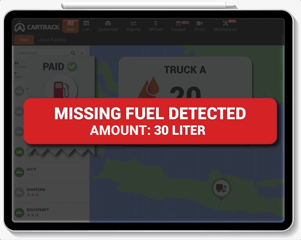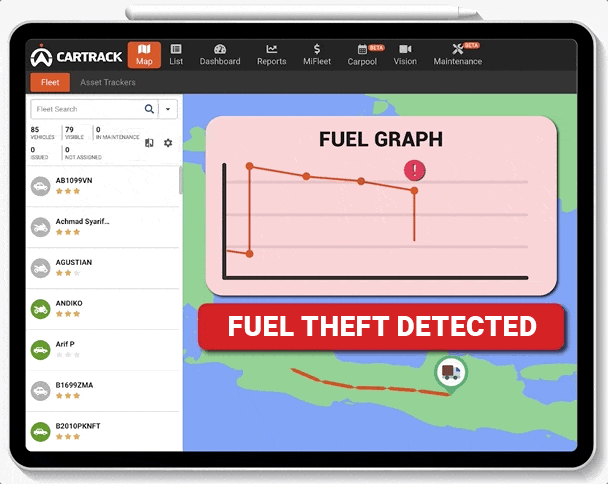 Effortlessly track every litre of fuel consumed by all your business vehicles using Cartrack's accurate Fuel Monitoring System.