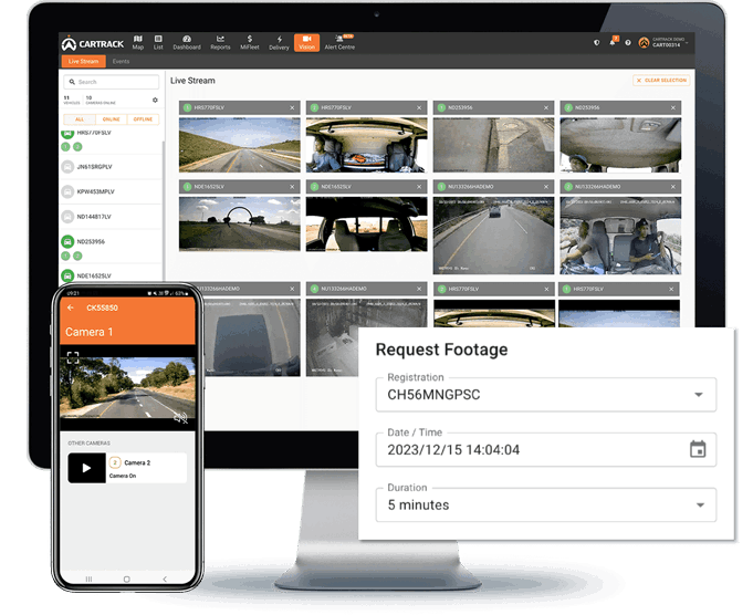 Live stream up to 16 cameras with crystal clear audio using Cartrack's live streaming truck fleet cameras